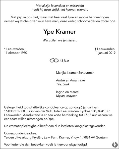 Grossier ype kramer overleden. Ype klases kramer was born on february 13 1791 in bolsward son of klaas jans kramer and djuuwer jans lantinga. Start kaartverkoop wat soesto.